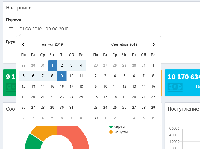Для выбора промежутка времени нажмите на Период и выберите интересующий вас период.